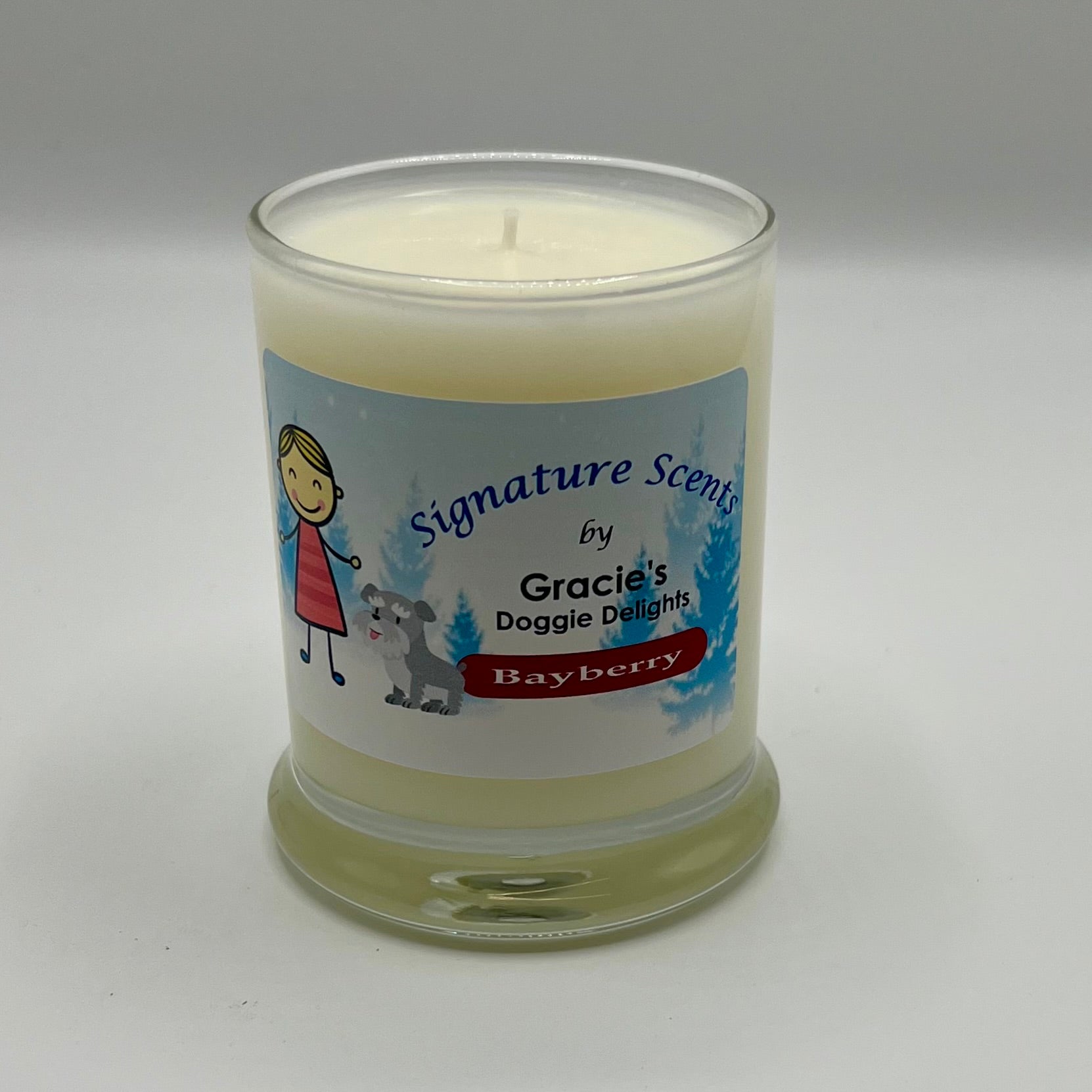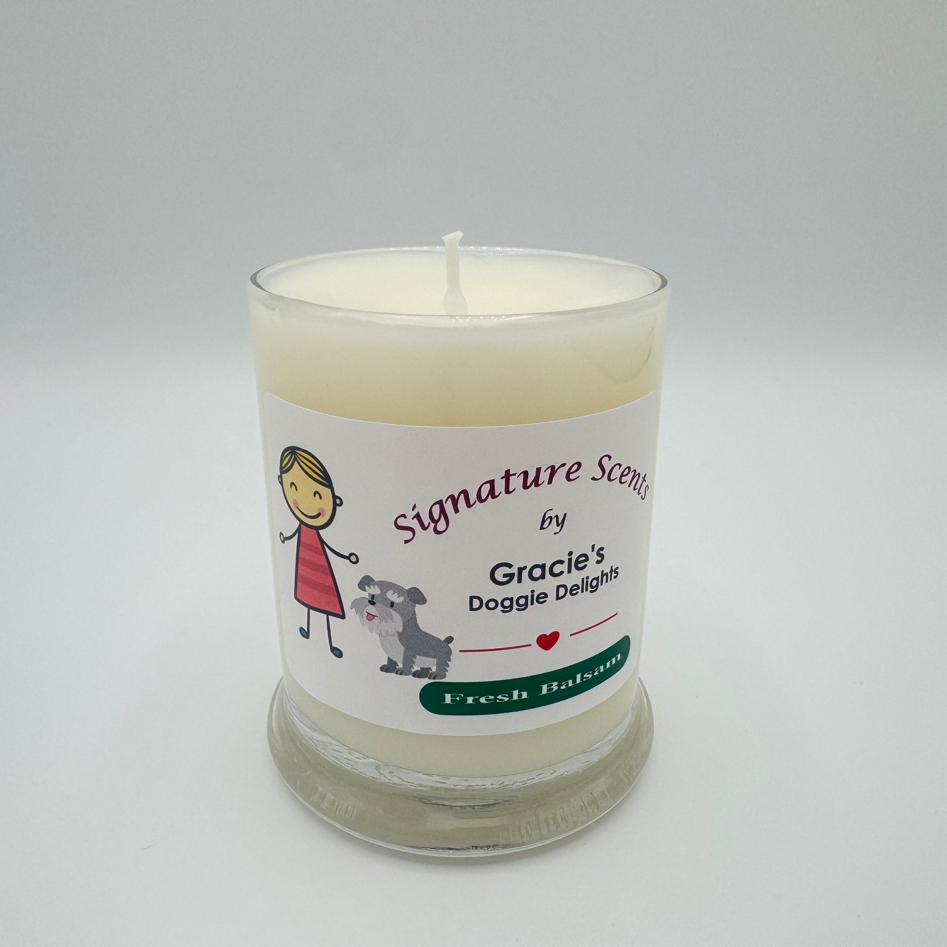 Gracie's all natural hand-poured soy wax candles featuring Signature Scents picked and poured by the boss herself.