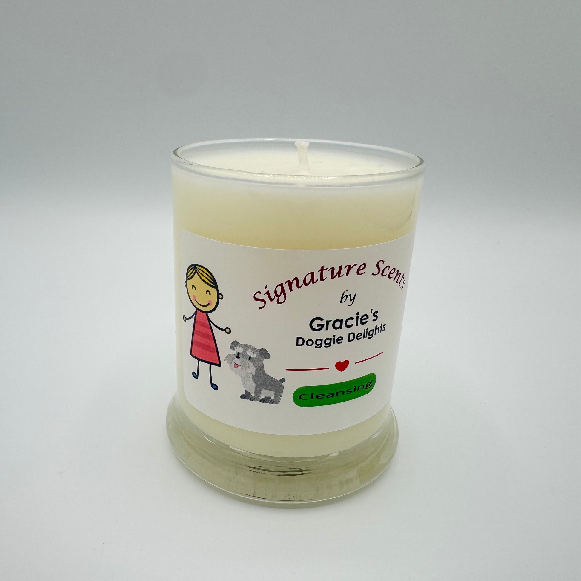 The original Cleansing Candle will freshen up your house with a beautiful clean citrus fragrance. Gracie Signature Scent Cleansing Candle is ideal for when you want to freshen up your home with a nice, clean smell. It’s perfect for those times when your G-Dog makes your house smell a little too much like.... well... dog.