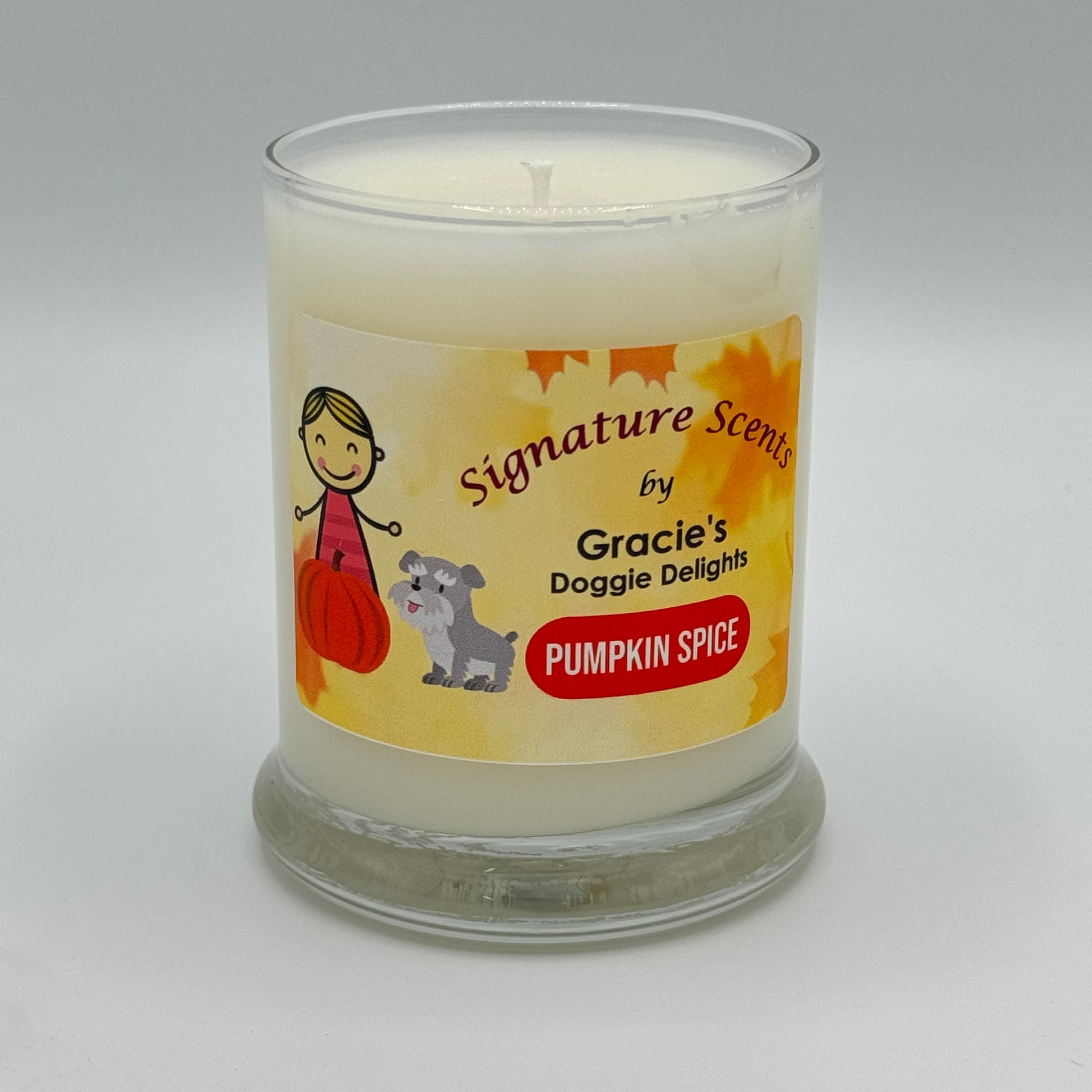 *LIMITED TIME SEASONAL SCENT.... Gracie's Pumpkin Spice Candle Evokes the cozy essence of autumn with its warm, inviting fragrance. The scent is a blend of rich pumpkin, sweet cinnamon, nutmeg, and clove, offering a comforting, spicy aroma that fills the room. Perfect for cool nights or holiday gatherings, the pumpkin spice candle is a nostalgic nod to fall festivities.
